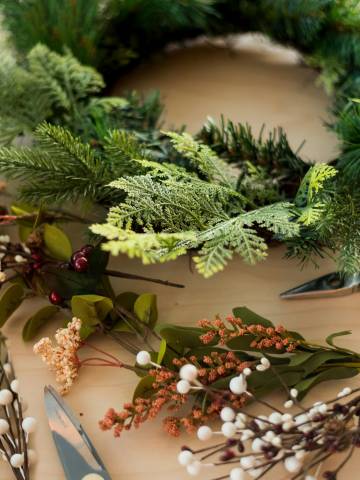 Enjoy a glass of fizz on arrival, before crafting your own beautiful Christmas wreath to take home.