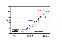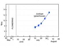 Early August Greenhouse Grape Harvest Juodupe sugar content, greenhouse, 2020 Dalrossach VineyardTo explore methods of cropping table grapes over as long a season as possible, the early ripening variety Juodupe was grown in an unheated greenhouse.Date Posted: Sunday, August 16, 2020 - 21:00GBVG Read more about Early August Greenhouse Grape Harvest